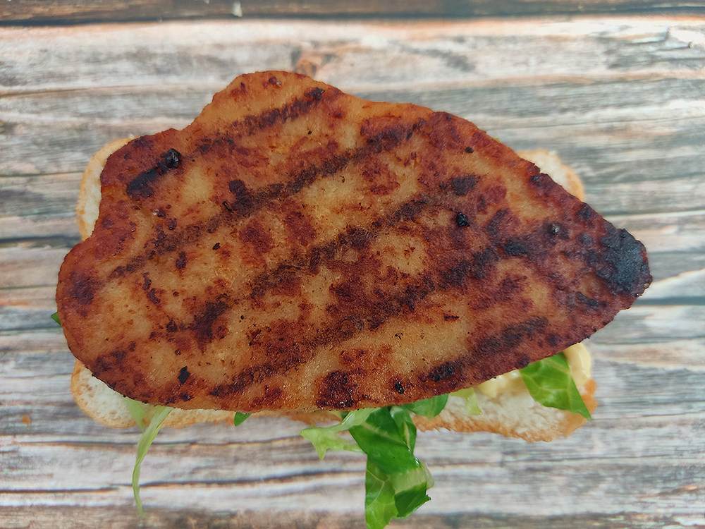 חזה בגריל טבעוני, כאן אני עם של טבעול, צרוב יפה על מחבת: