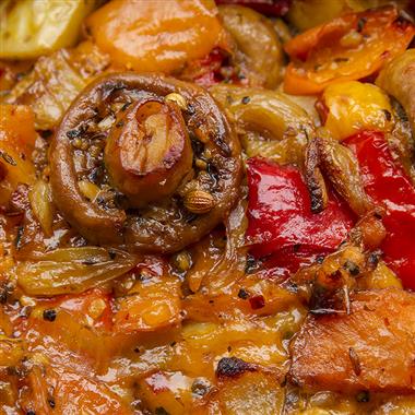 ירקות בתנור בתיבול ברביקיו וצ'דר טבעונית