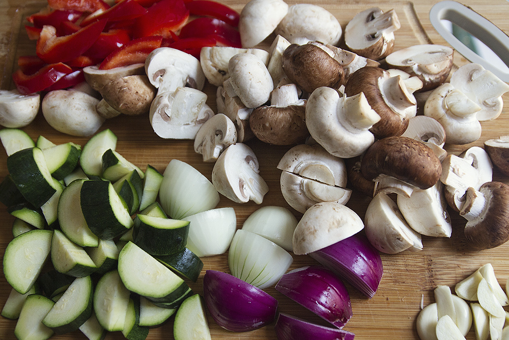 - 2-3 זוקיני, חתוכים גס לחצאי עיגולים